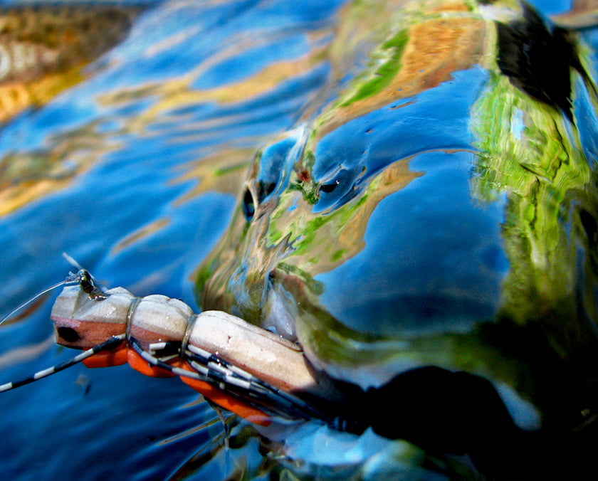 In 2010, a Boise fly club asked me to give a presentation about trout photography. One title of this presentation was called Keep 'em Wet. I discussed that wet fish simply look better. A fish down in or very close to the water encourages interesting camera angles, fantastic reflections, and often overlooked details of the waterline environment. And importantly, results in happier fish returned to the water revived and in good condition!