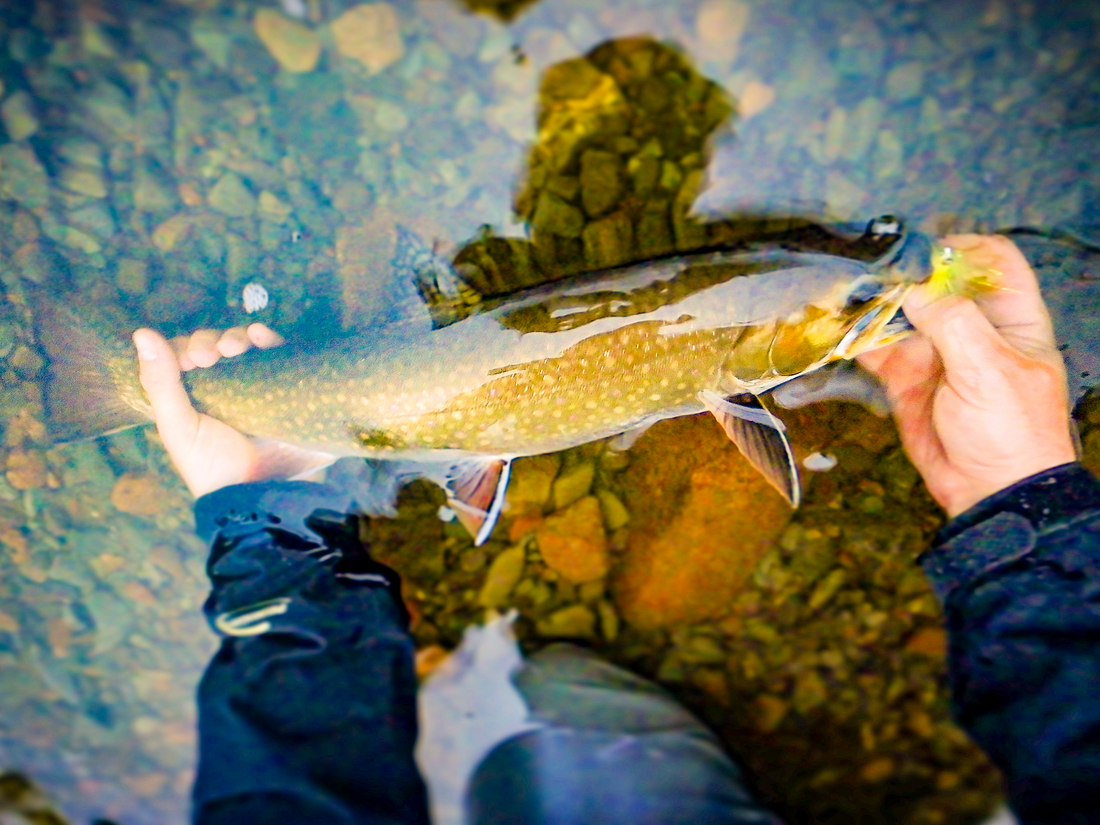 Soon, I saw it for myself. On my third swing a spunky sea run trout took hard and bowed my seven weight. Later, in the river’s estuary, the water’s surface almost boiled with trout taking minnows. Matt netted and released one of the finest brook trout I’d ever seen — a fat and healthy specimen that darted away with a flick of its tail. While he was hardly disappointed, Matt told me the fishing had been even better the week before.