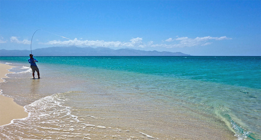 As I rolled left and stripped, both fish flared their combs in the crumbling wave and turned tight U's away from me. When they did, the line tightened in my hand and the rod became heavy as I now lifted to feel the heavy pull of a fish. The pair of fish ran hard back to the deep blue water, one of them taking me and my fly with it. Once settled and tight with loose line now safe on the reel I shouted to my wife Ali and friend Paul. Moments later the fish launched into a series of tarpon-esque jumps like none I've ever seen or even heard of rooster fish doing. It was pure thrill. It was pure joy.