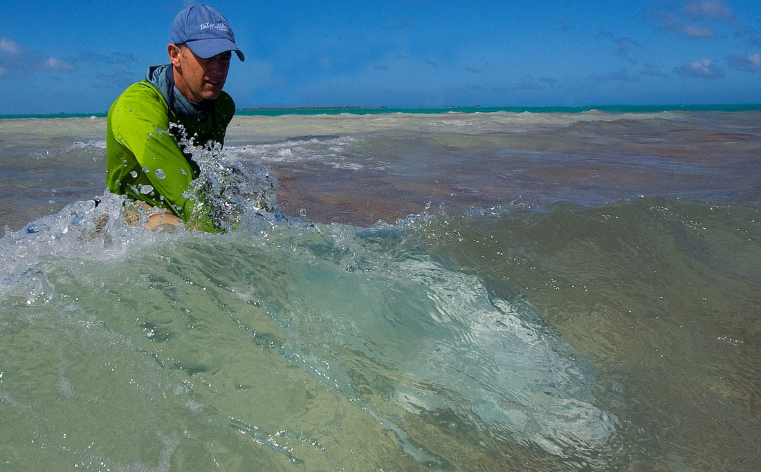 The third, exciting tactic is to employ a large spinning rod with a hook-less plug and attempt to tease the fish to the surface off a reef, up from a deep cut or out of coral head. Most often this will take place on the outside of the break zone, on the edge of the bluewater and flats. This is a team effort where the boat driver keeps the boat in position and an angler or guide casts the plug into the reef and retrieves it back as fast as they can. The other angler stands ready in the bow of the boat with a sturdy 12-weight and a streamer or large popper. When the plug is being retrieved it is not uncommon to have multiple fish charging after the teaser. The goal of the angler on the spinning rod is to keep the teaser away from the fish (this is not as easy as you may think) so it chases it all the way in. When the fish are within casting distance the plug must be yanked clear of the water and the fly must be dropped in at the same moment (again, not as easy as it sounds).